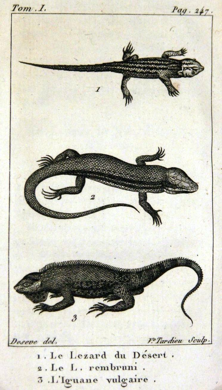 "Le lezard du désert. Le l[ezard] rembruni. L'iguane vulgaire"