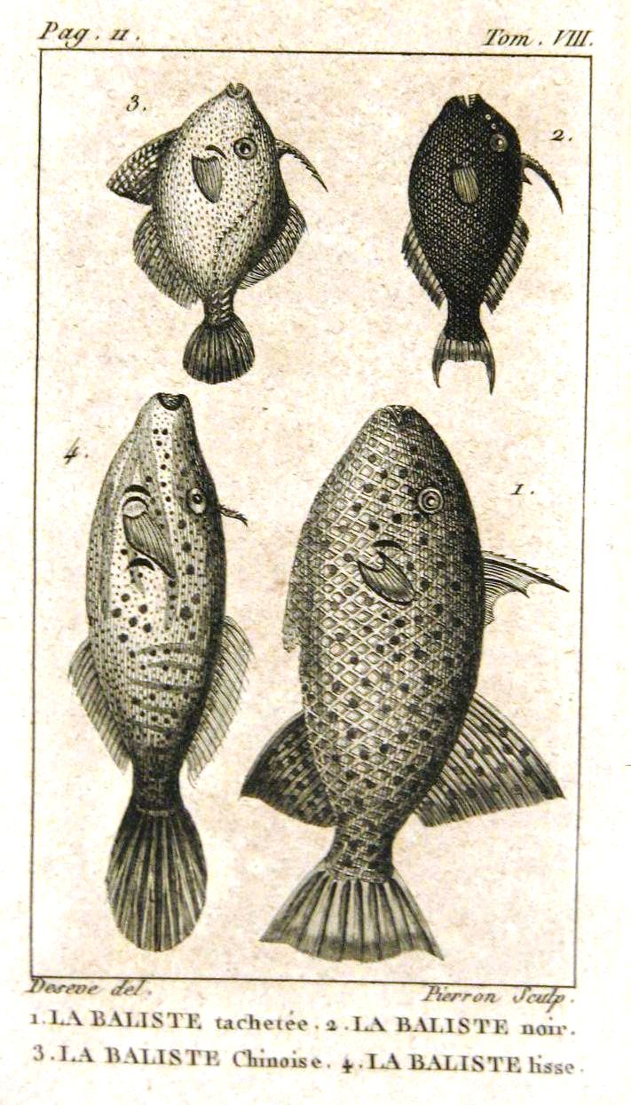 "La baliste tachetée. La baliste noir. La baliste chinoise. La baliste lisse"