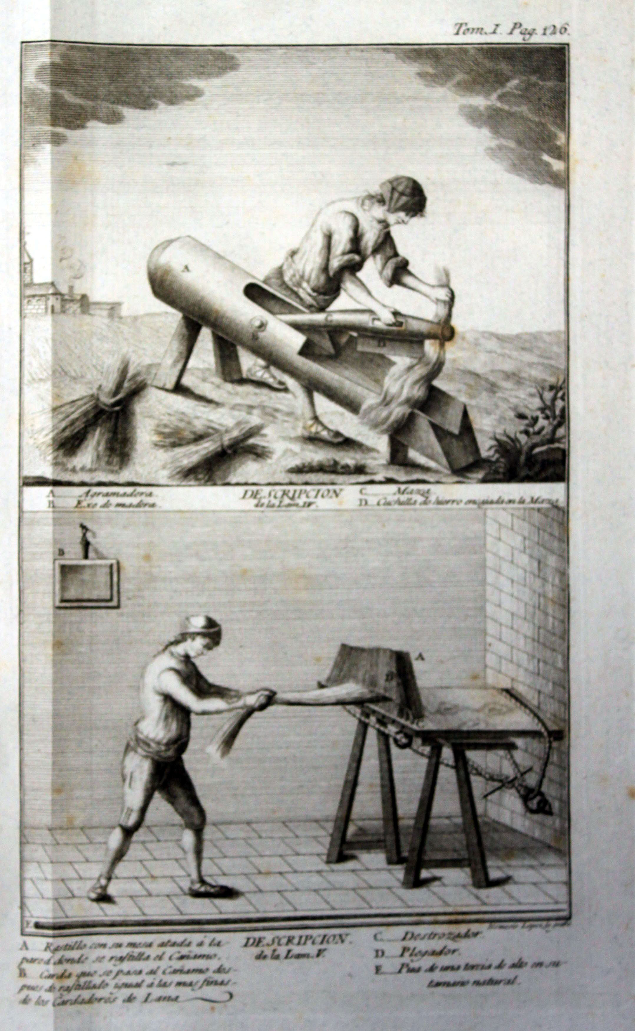 Maquinaria agrícola y hombres trabajando