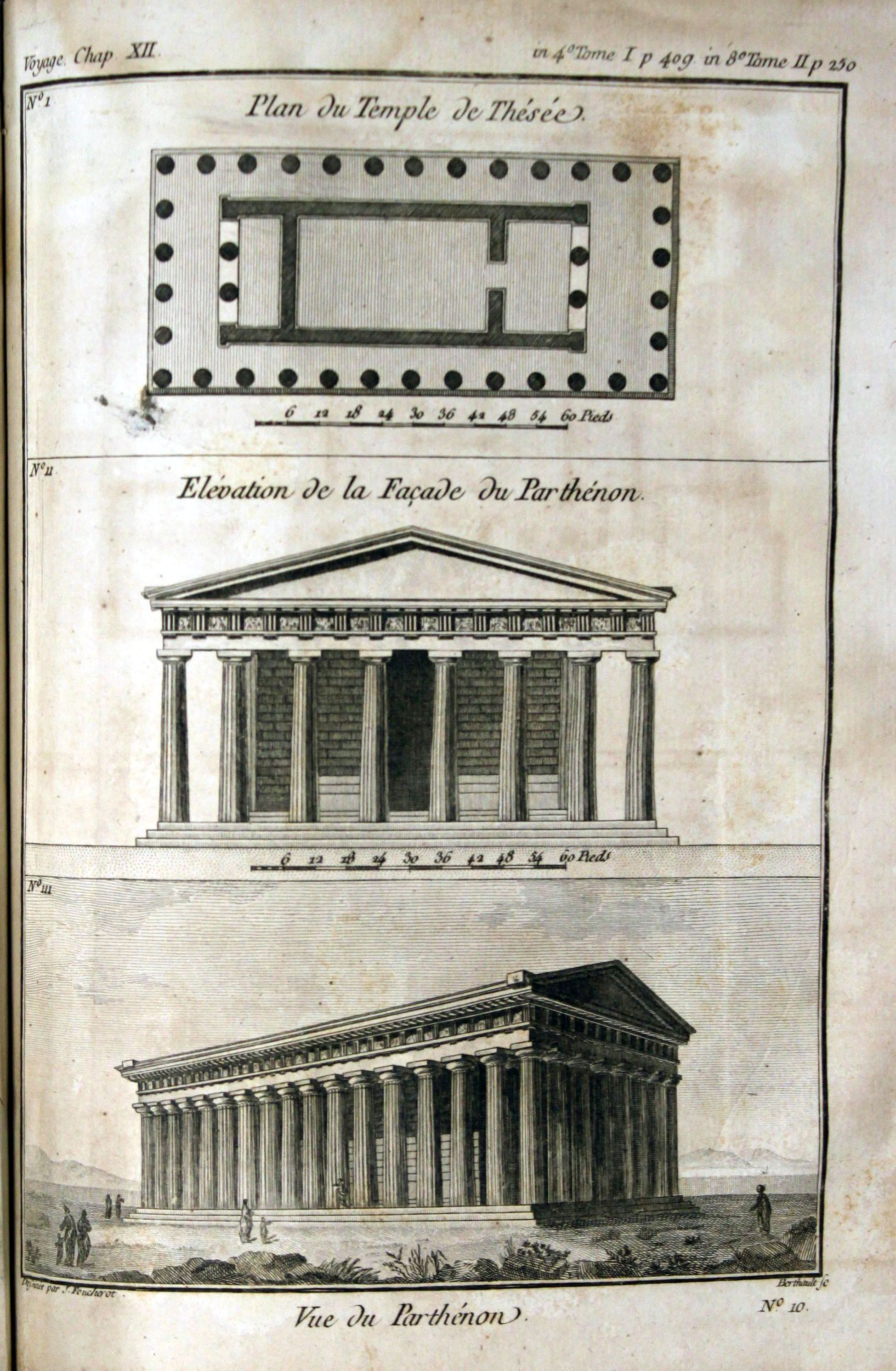 Plano y alzado del Partenón. Plano del templo de Teseo