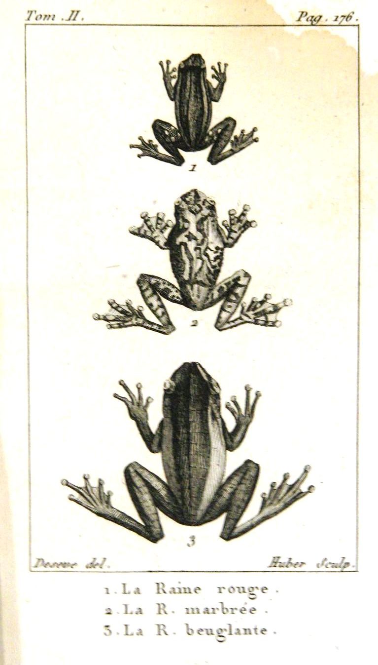 "La raine rouge. La r[aine] marbrée. La r[aine] beuglante"