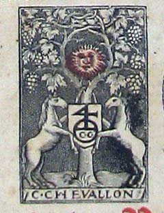 Un sol entre cepas de viña y debajo su escudo con las iniciales C.C. sujetados por dos caballos