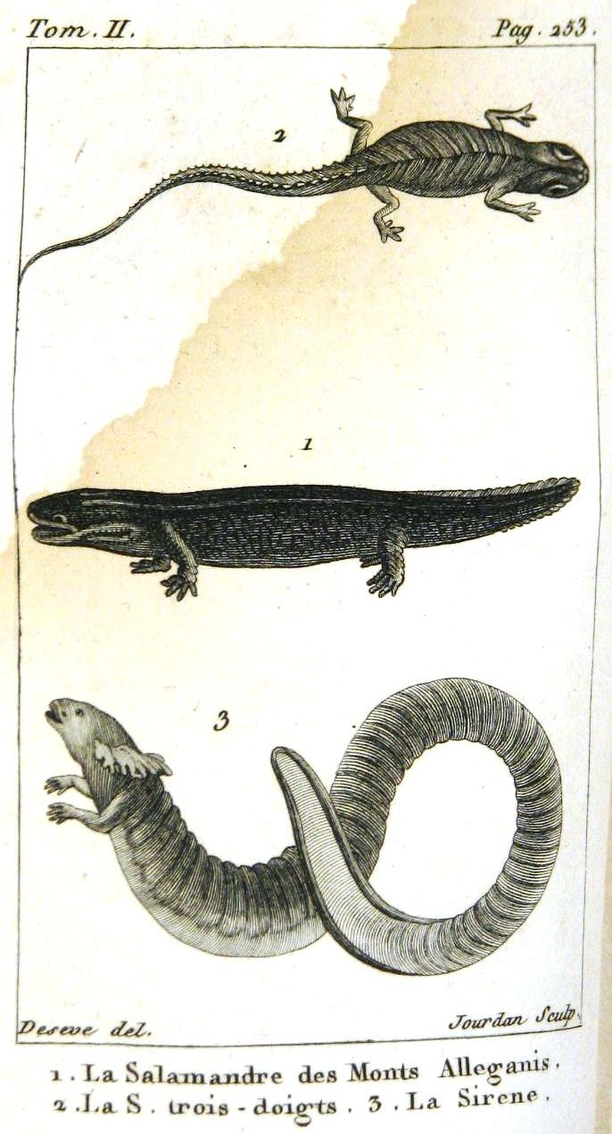 "La salamandre des Monts Alleganis. La s[alamandre] rois-doigts. La sirene"