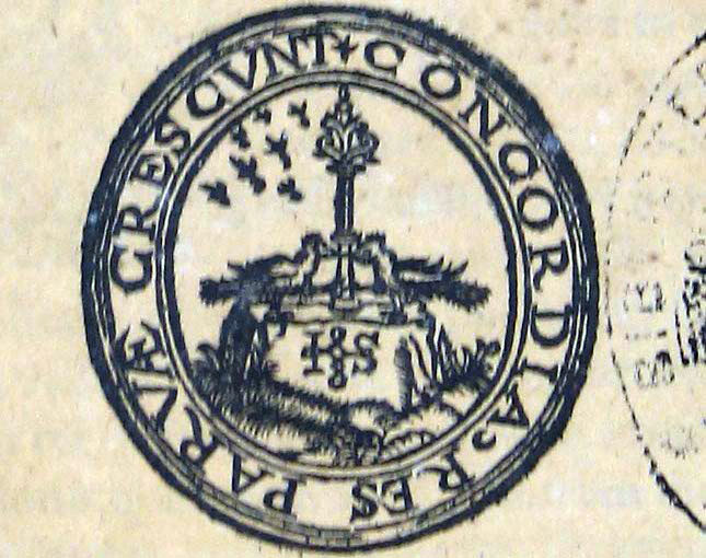 En un círculo, sobre un altar se eleva, entre dos palomas, un cetro coronado.