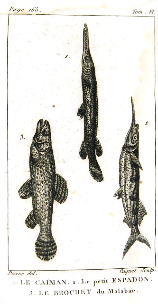 "Le caiman. Le petit espadon. Le brochet du Malabar"