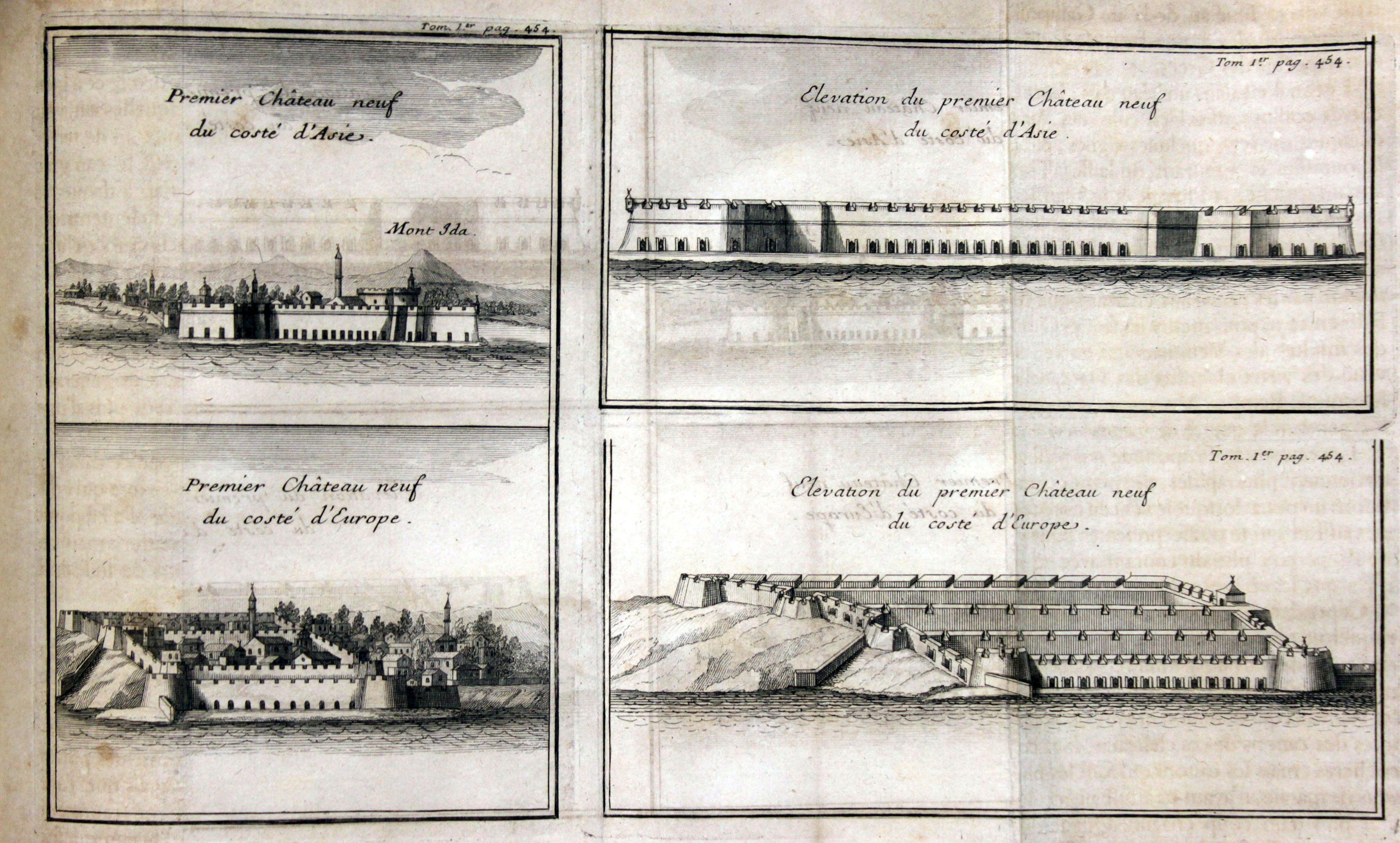 Sección y alzado de castillos en el estrecho de Dardanelos