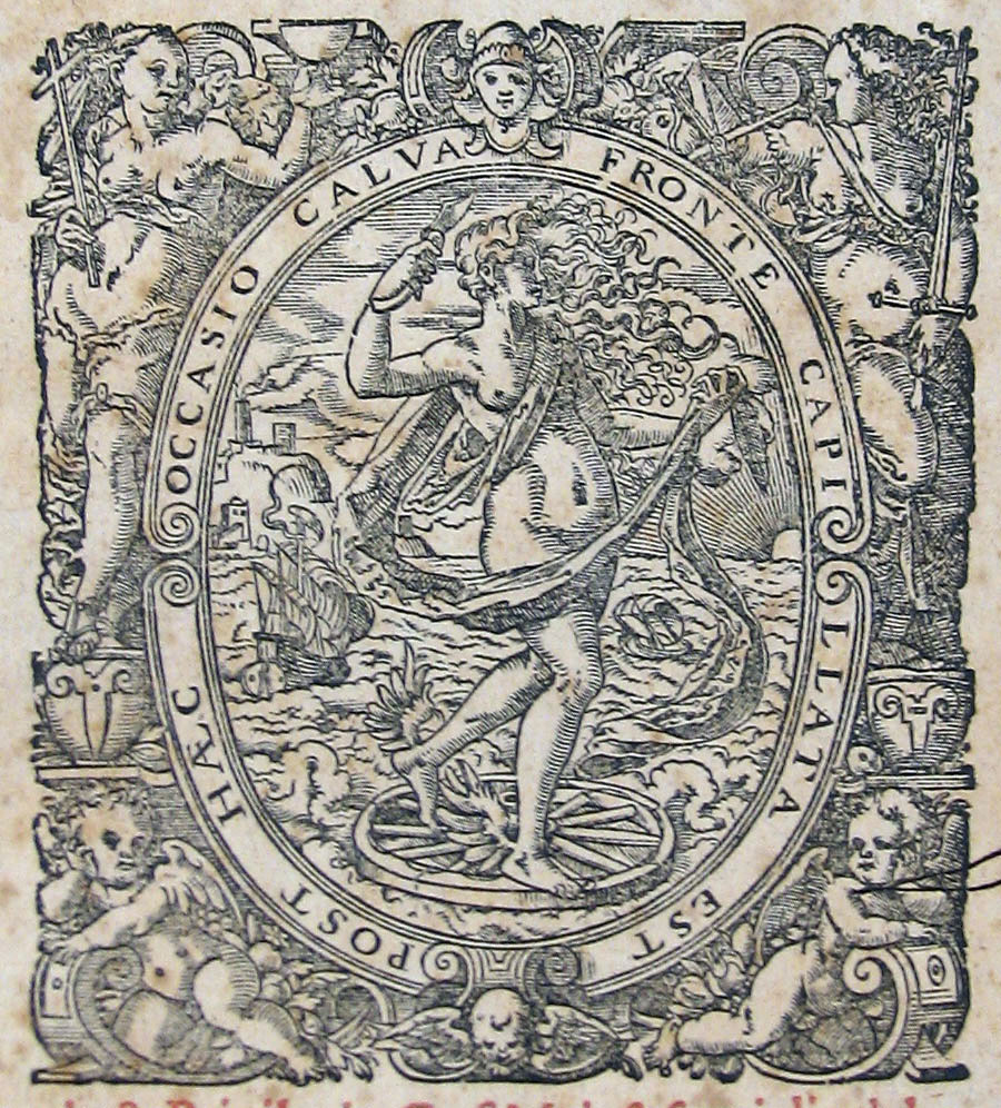 La Oportunidad sobre una rueda, con la cabellera al viento y una navaja en la mano
